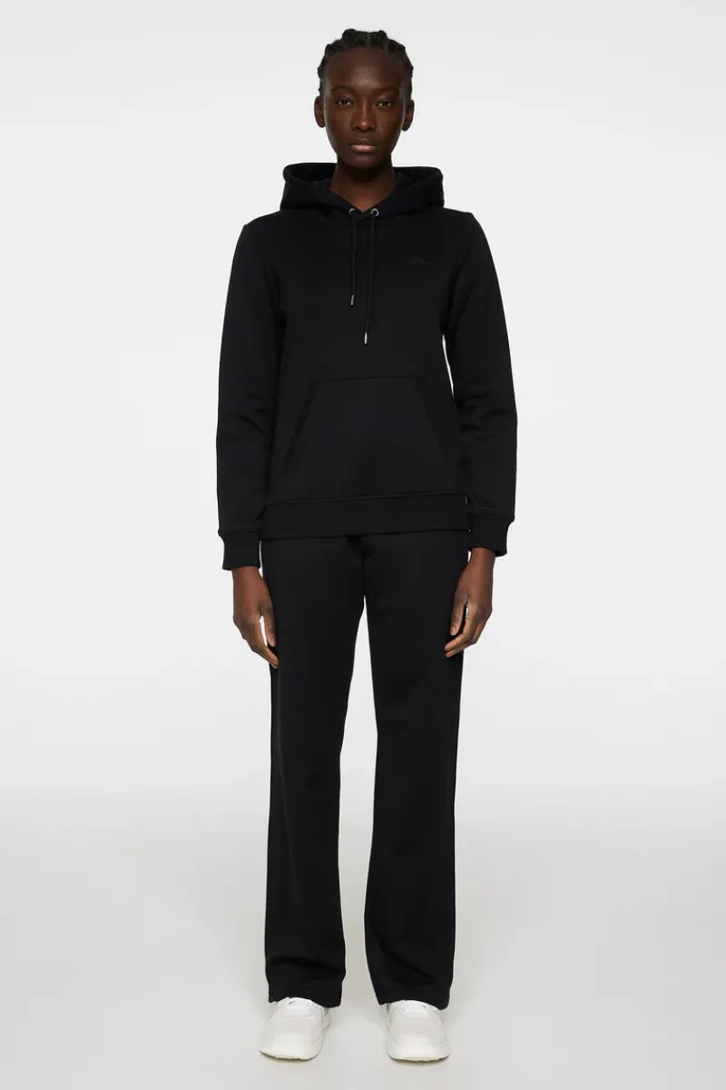 Stay comfortable and polished in the women’s Alpha Hood. Designed with a brushed cotton blend for a soft, luxurious feel, it features ribbed cuffs, a front pocket, and a drawstring hood, while the subtle signature logo adds a refined touch to this wardrobe staple.